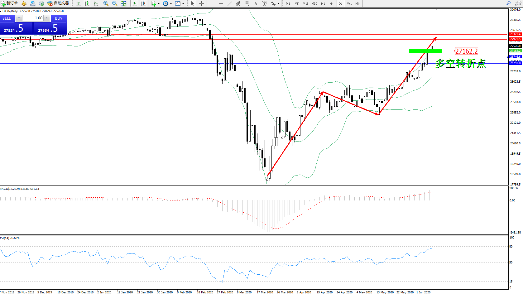 道琼斯指数6月8日(周一)收盘上涨461.50点,涨幅1.70%,报27572.44点。美股三大指数线收涨,随着放松防疫封锁促进了对经济前景的乐观预期,美国股市史诗级的上涨帮助标普500指数在周一收复2020年全部失地,这个基准指数周一升至15周高点,从今年低点的累计涨幅扩大至近45%。纳斯达克100指数升至历史新高,波音领涨道琼斯工业平均指数。随着美国很多地区取消防疫封锁,交易员们正在追涨美股。投资者可能没有考虑所有潜在风险,市场参与者目前在等待美联储周三结束的为期两天的政策会议,不过由于非农就业岗位意外增加,已经不再预测美联储会采取负利率的可能性。