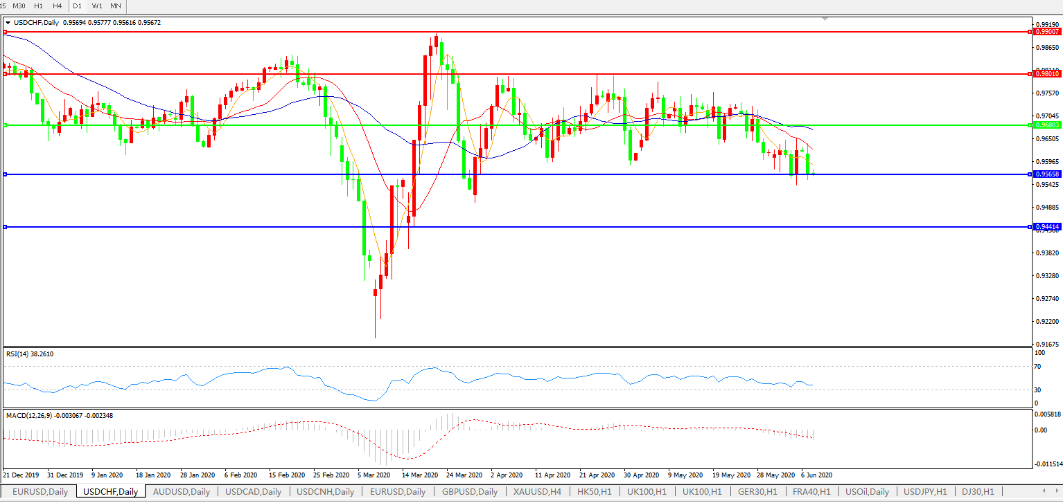 美元兑瑞郎USDCHF 日线图: