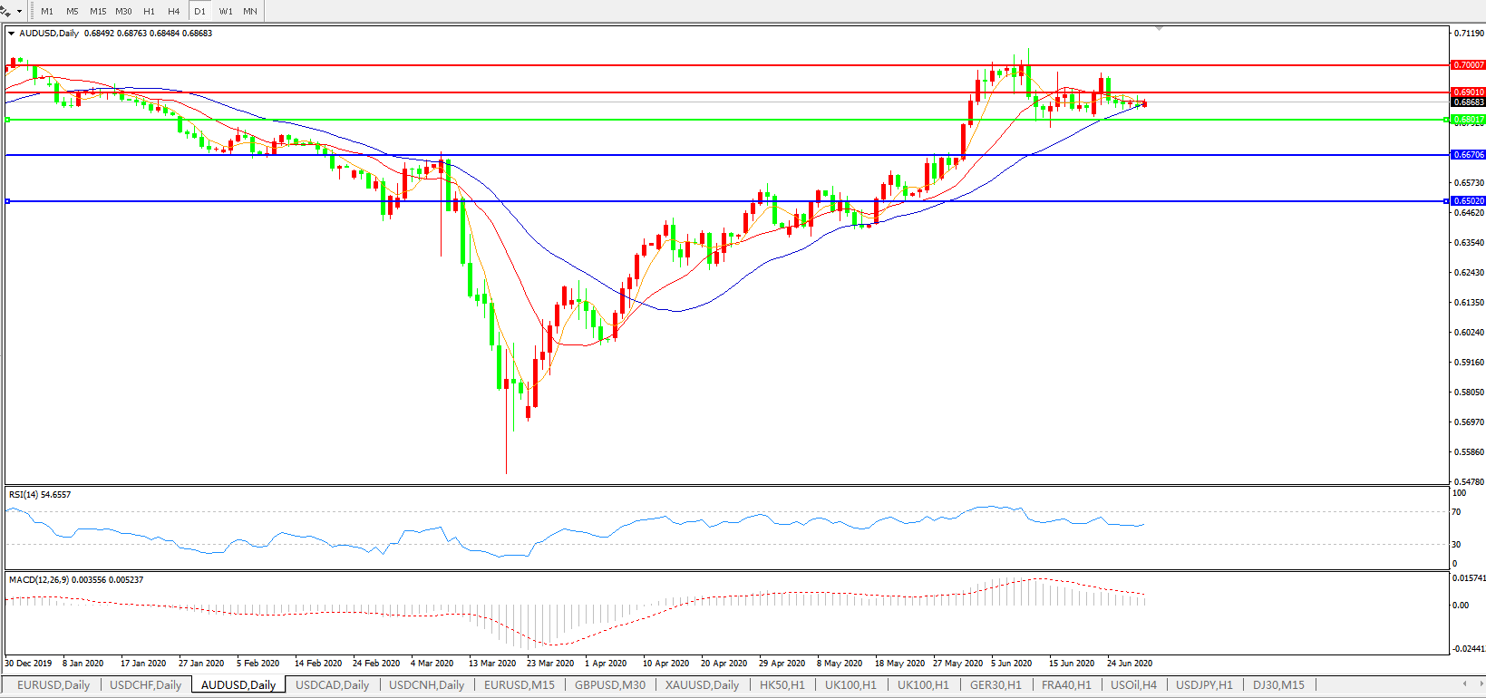 澳元兑美元AUDUSD    日线图: