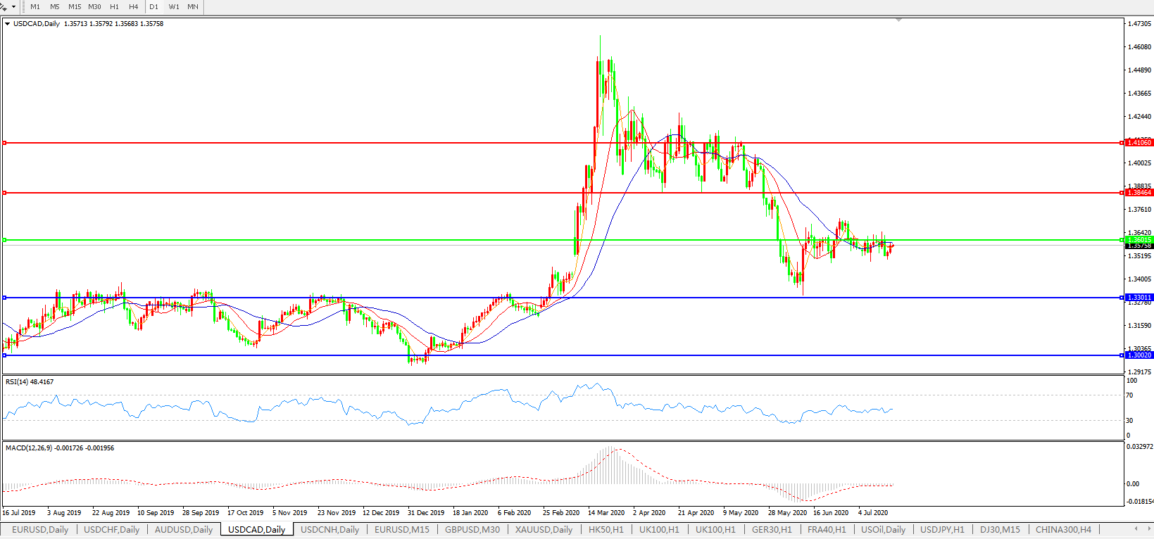 美元兑加元USDCAD 日线图: