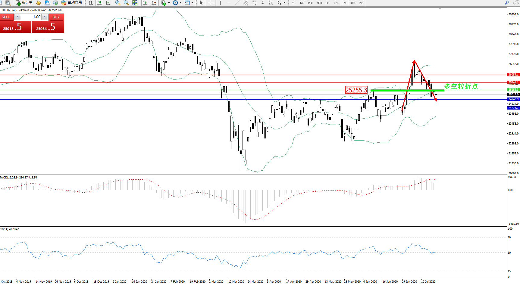 恒指HK50 ——日K线图显示: