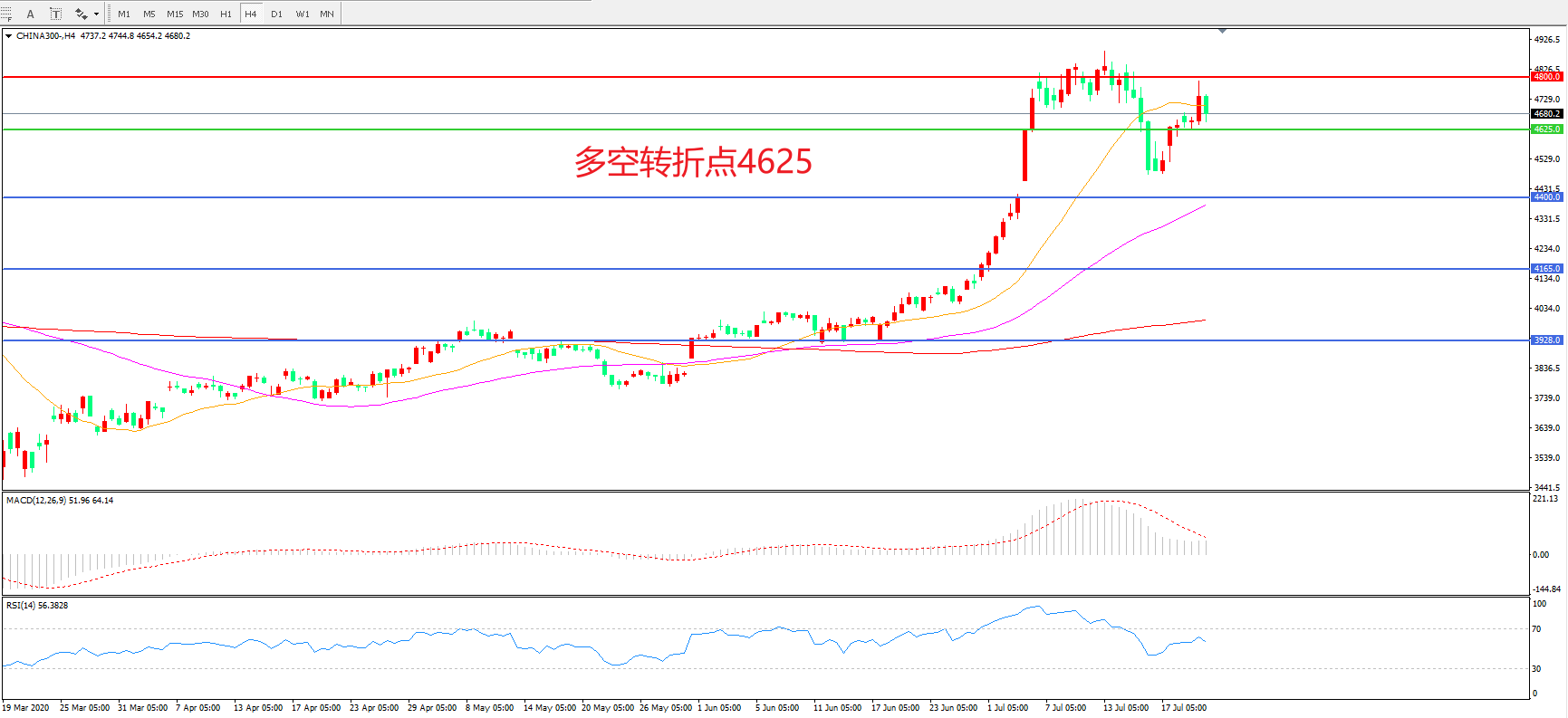 多空转折点:4625.00