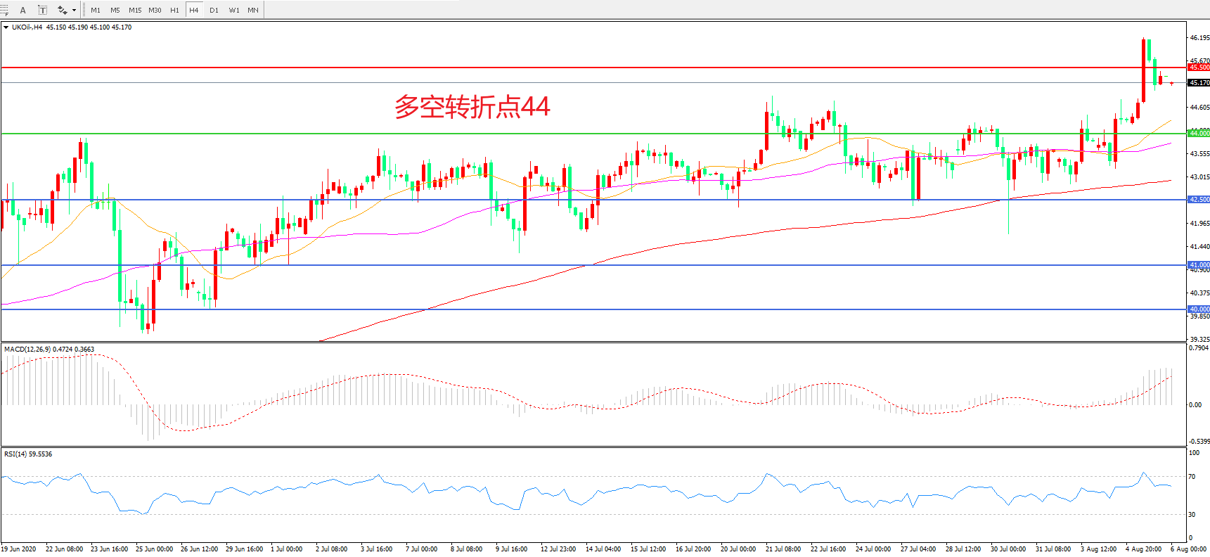 交易策略:  在44.00之上看涨,目标46.00      49.00