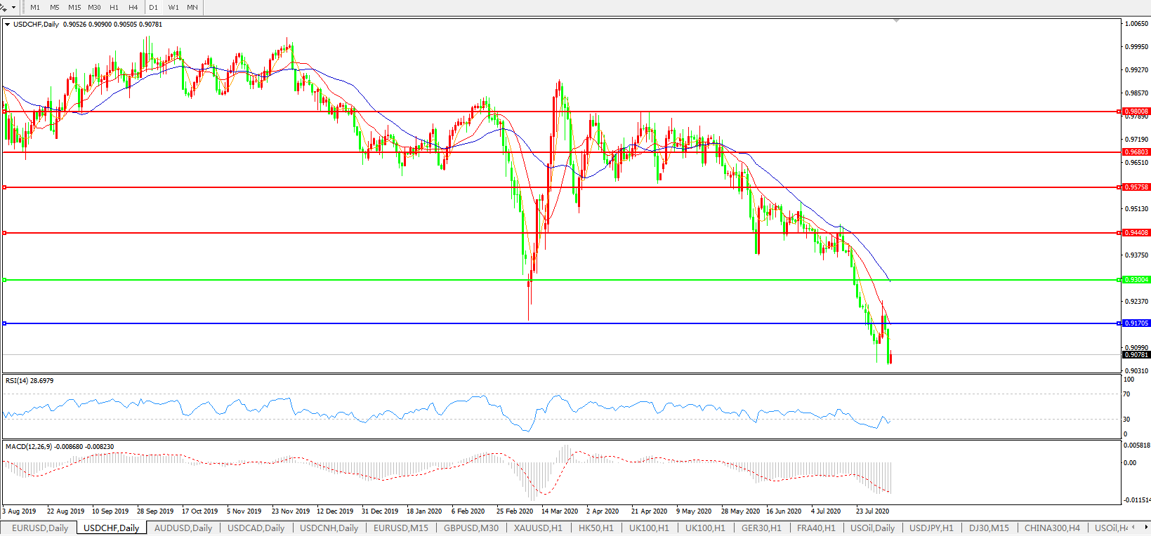 美元兑瑞郎USDCHF 日线图: