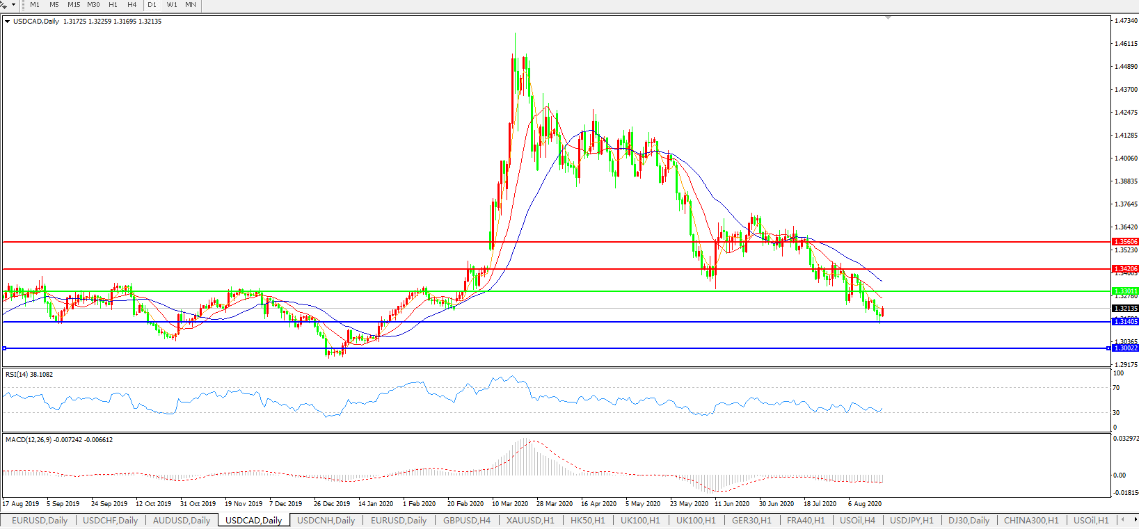 美元兑加元USDCAD 日线图: