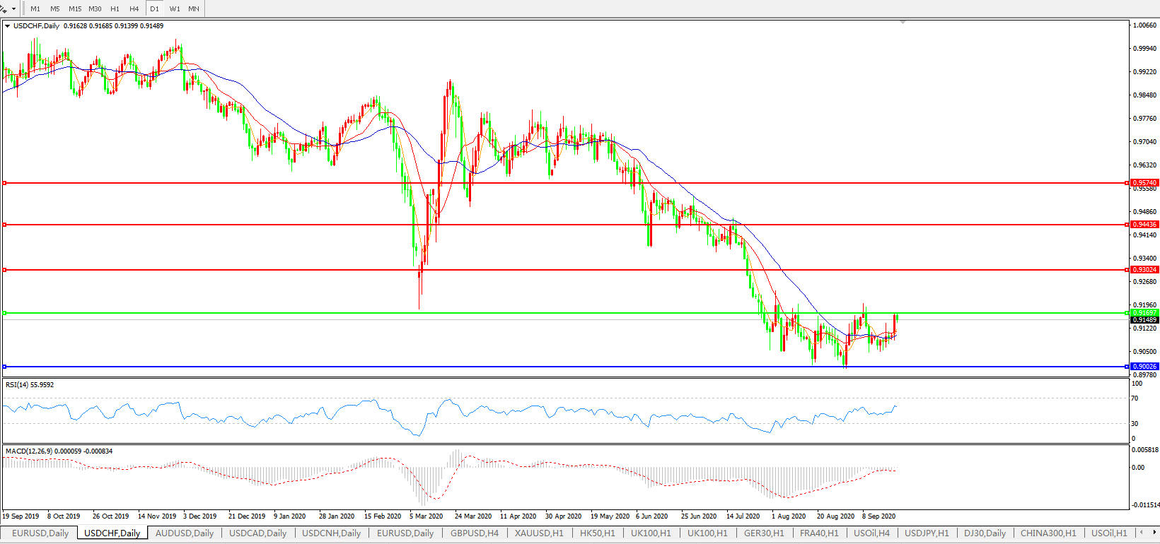 美元兑瑞郎USDCHF 日线图: