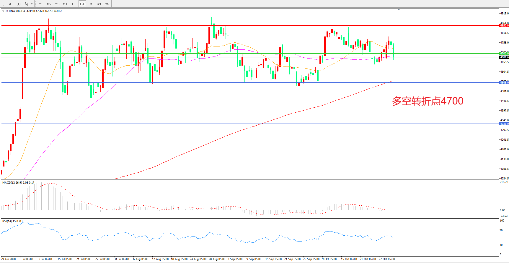 备选策略:在4700.00之下看跌,目标4545.00 4325.00