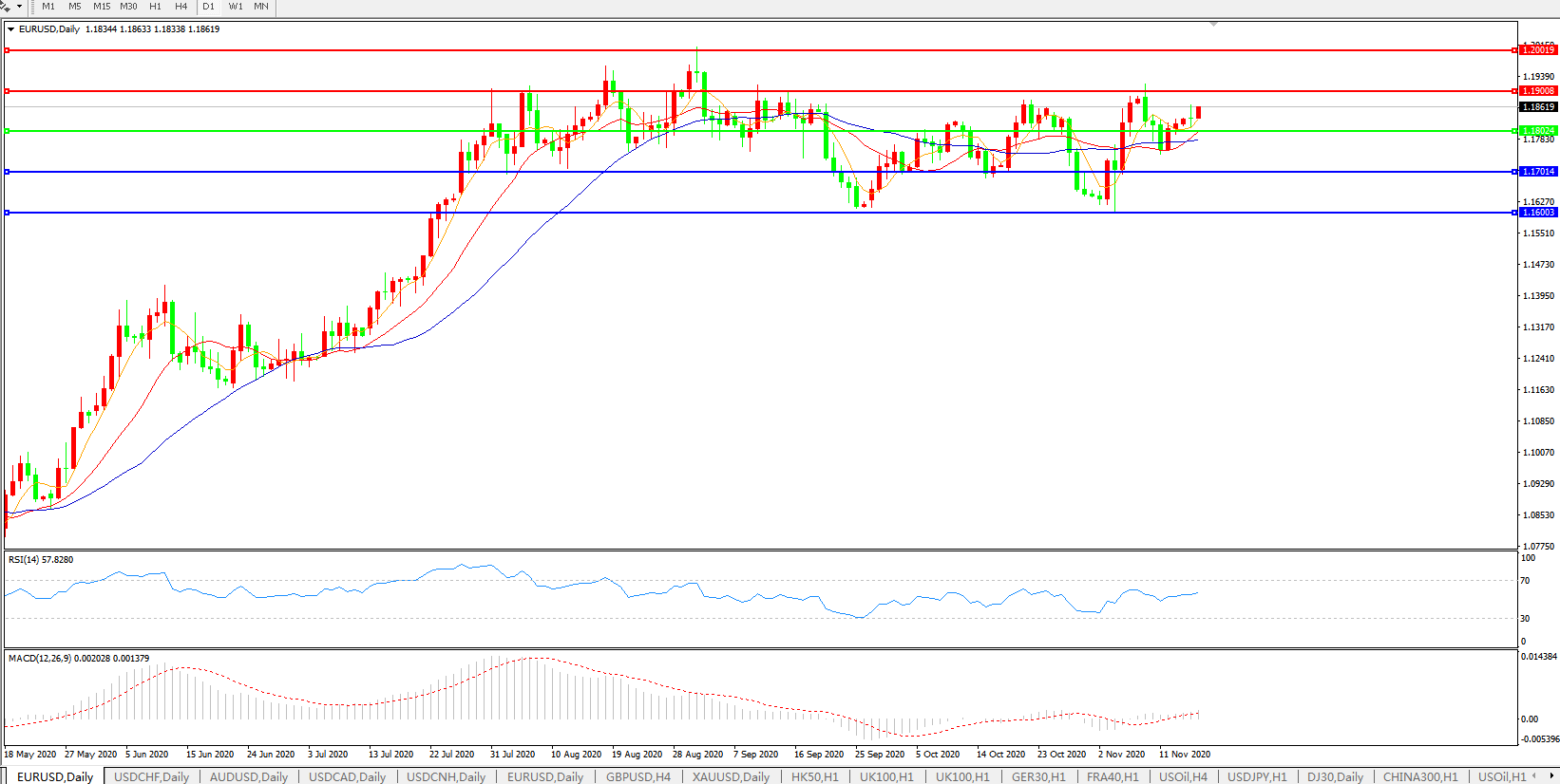 欧元兑美元EURUSD   日线图: