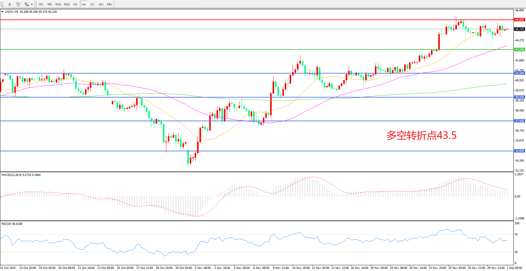 多空转折点:43.50