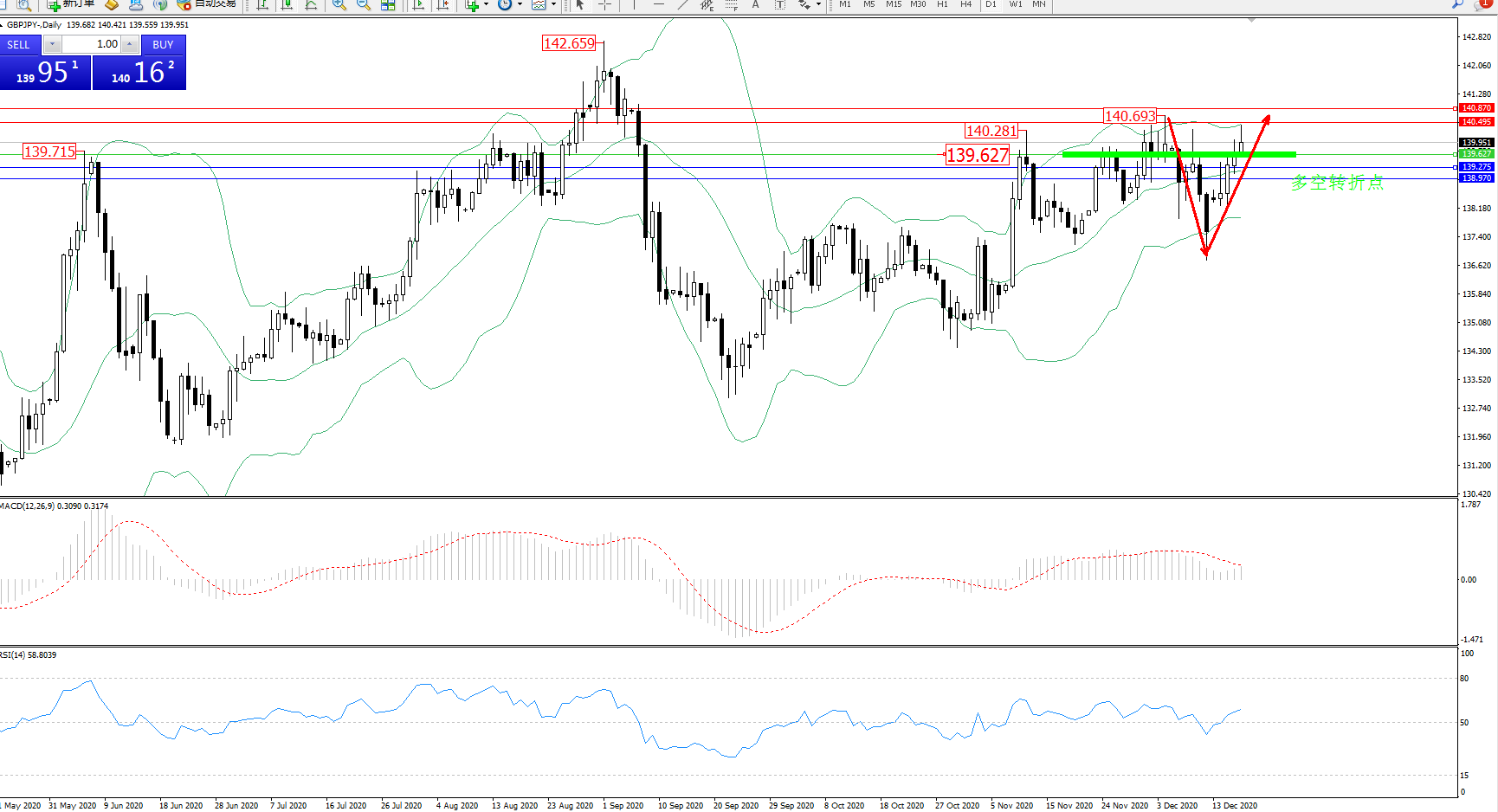 交易策略:139.627上方看涨,目标140.495、140.870