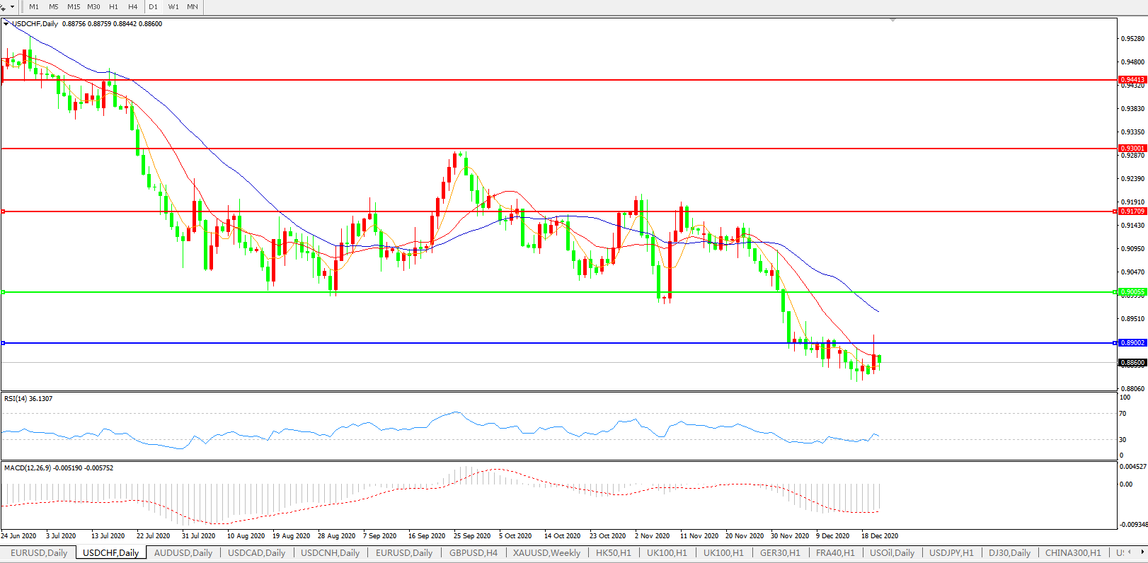 美元兑瑞郎USDCHF    日线图: