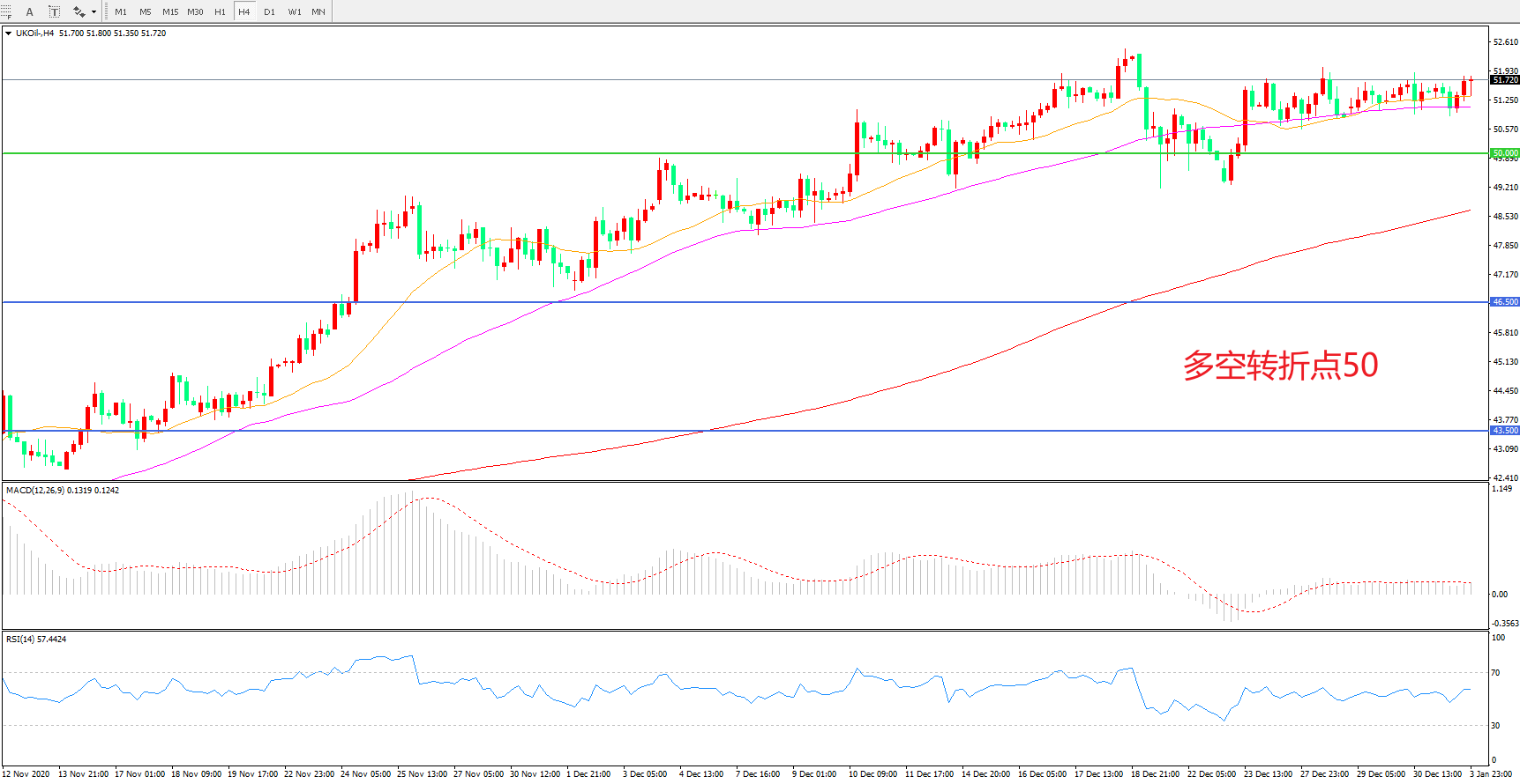 交易策略:  在50.00之上看涨,目标53.00      57.00