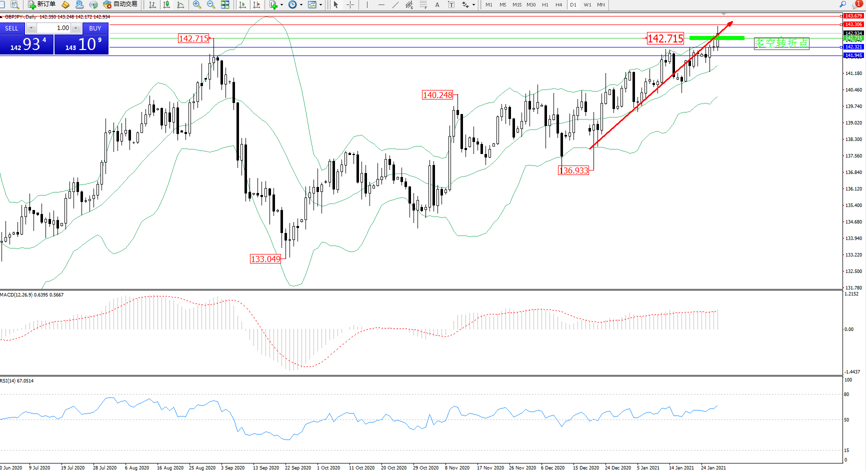 技术点评:多头动力延续布林带指标通道中上轨区间持续震荡上扬态势良好,前期高位145.715位置已然破位,有继续上扬态势,布林带指标通道呈上行趋势走势持续中,未见有减弱态势,MACD指标处于0轴线上方平缓整理平移中,RSI指标处于50均衡线上方维持弱势派上行中;