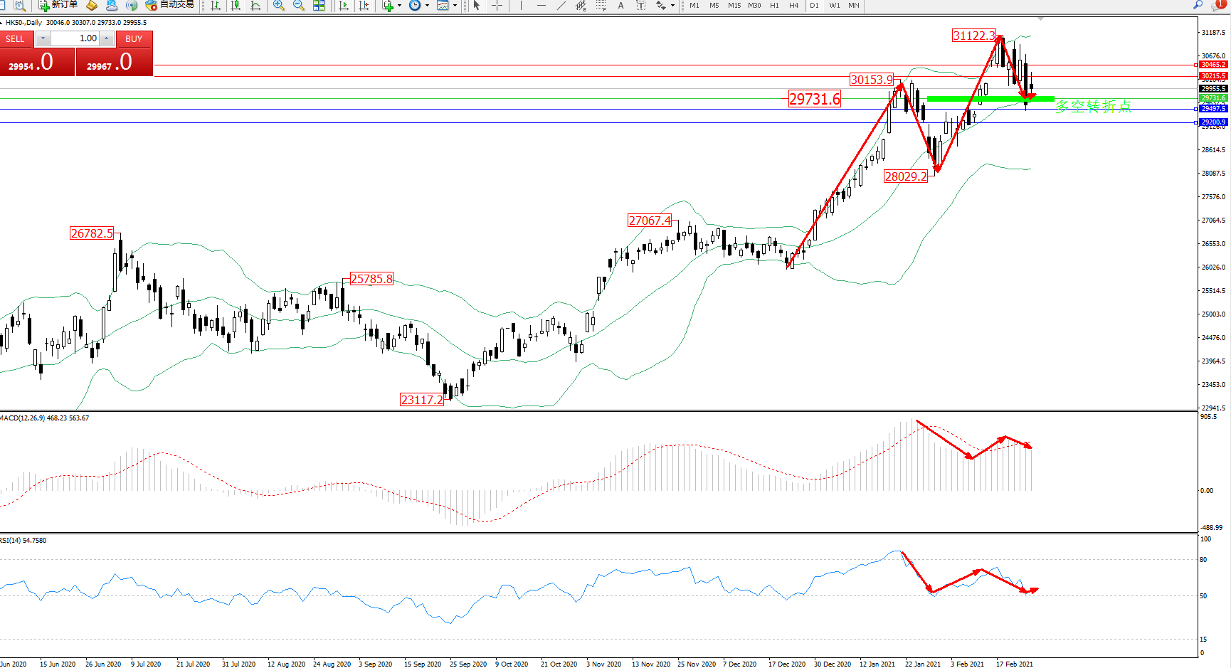 恒指HK50 ——日K线图显示: