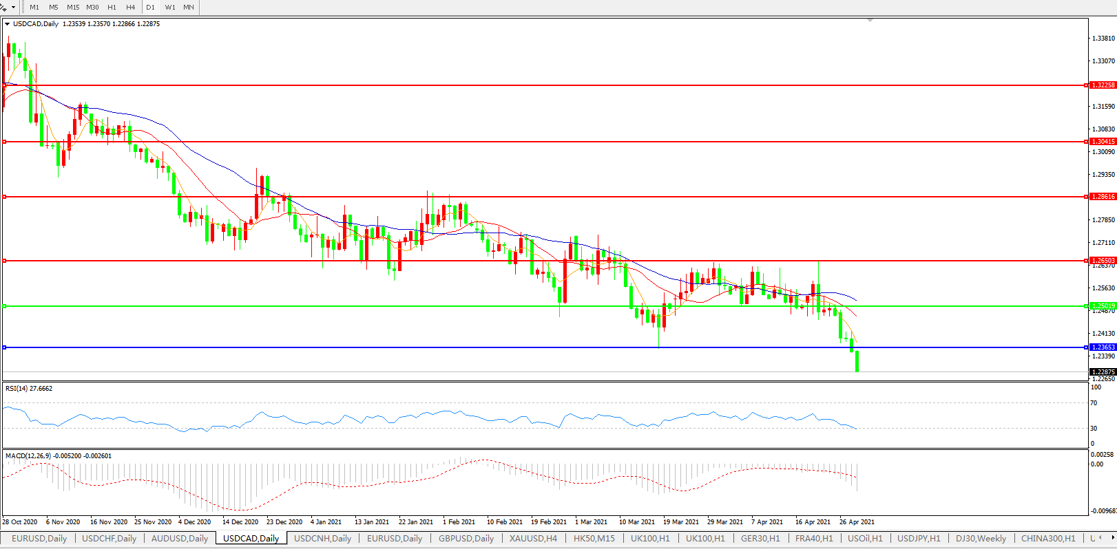 美元兑加元USDCAD    日线图: