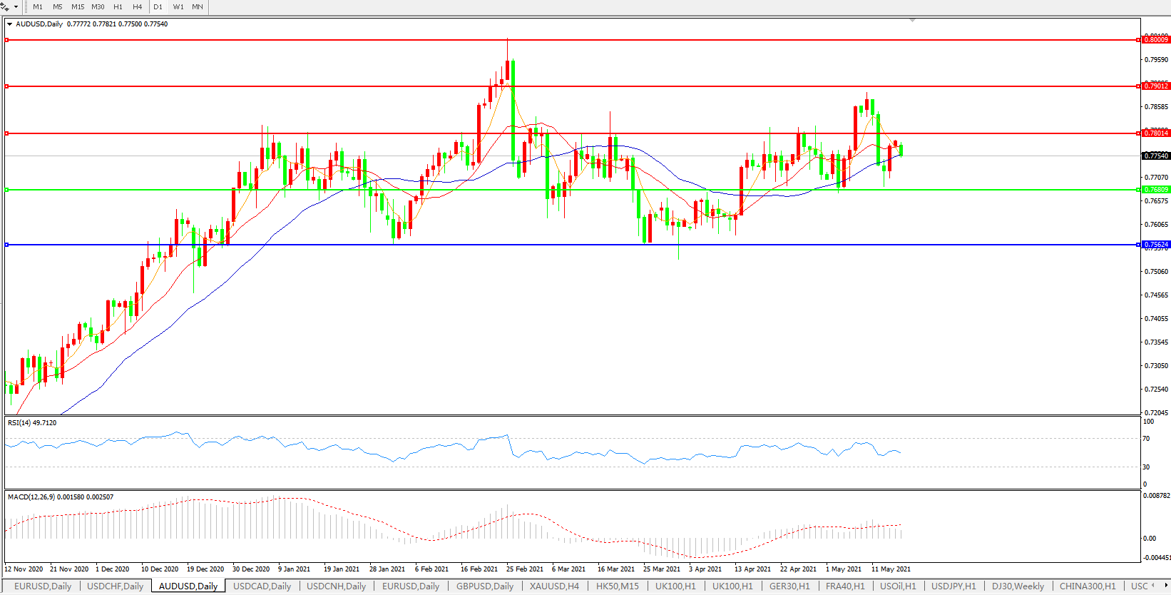 交易策略:0.7680上方看涨,目标0.7800、0.7900
