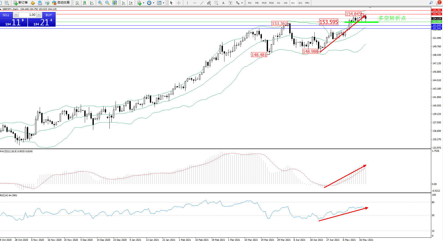 多空转折点:153.595