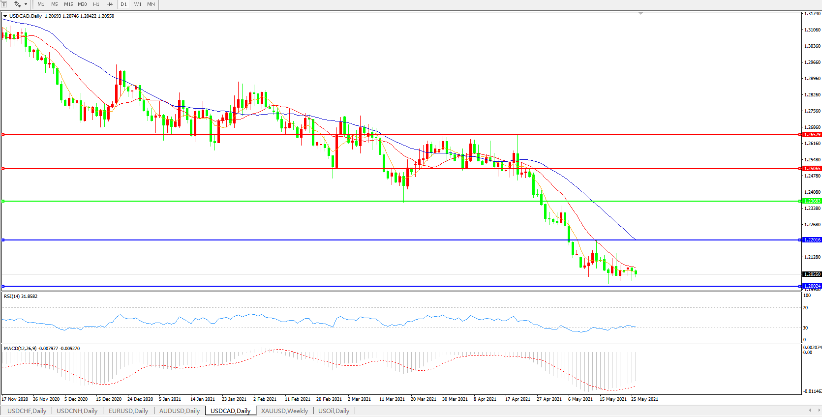 美元兑加元USDCAD    日线图: