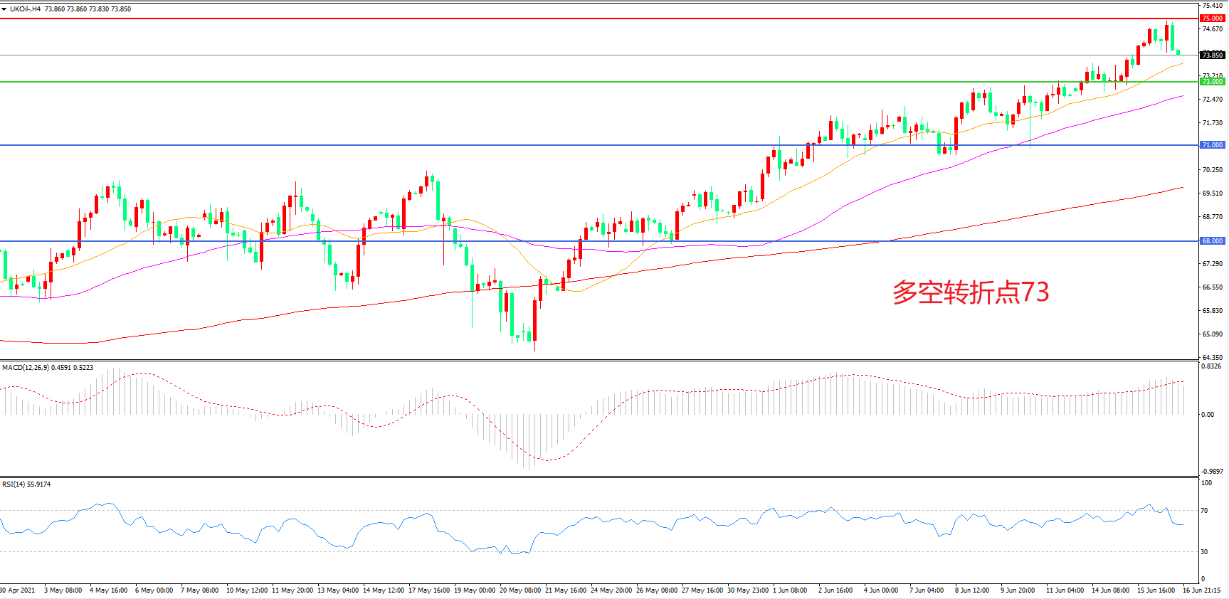 交易策略:在73.00之上看涨,目标75.00 79.00