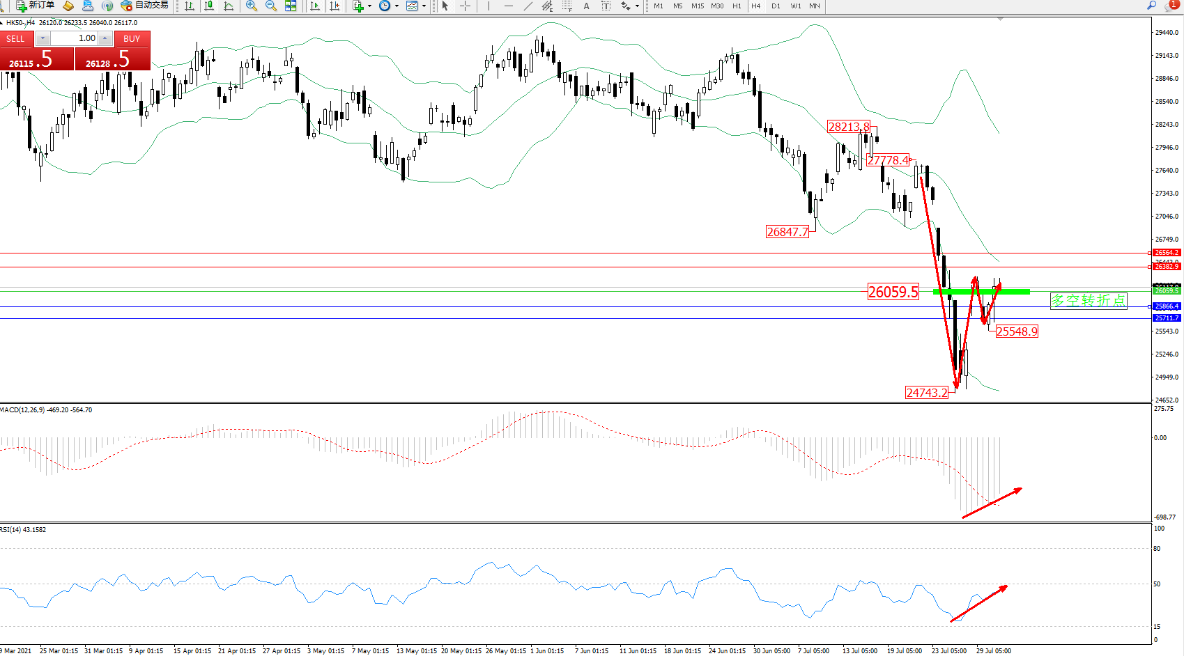 恒指HK50 ——4小时K线图显示:
