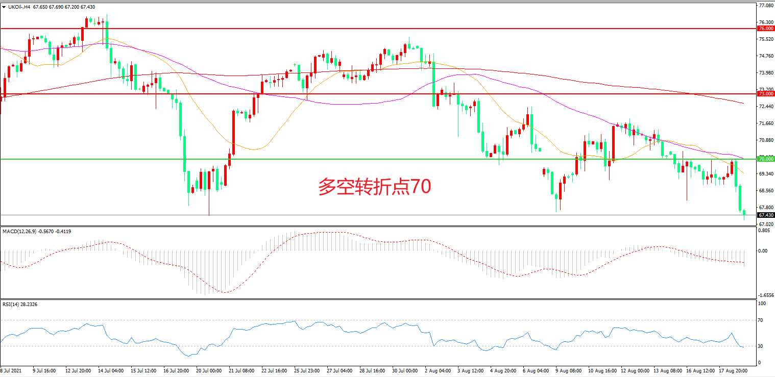 交易策略:在70.00之下看跌,目标66.50 62.00