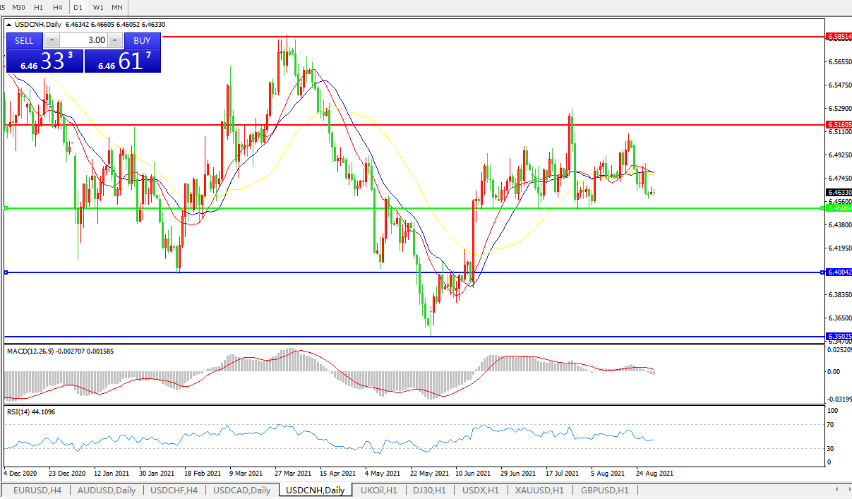 备选策略:在6.4500之下,看跌,目标价位为6.4000,然后为6.3500。