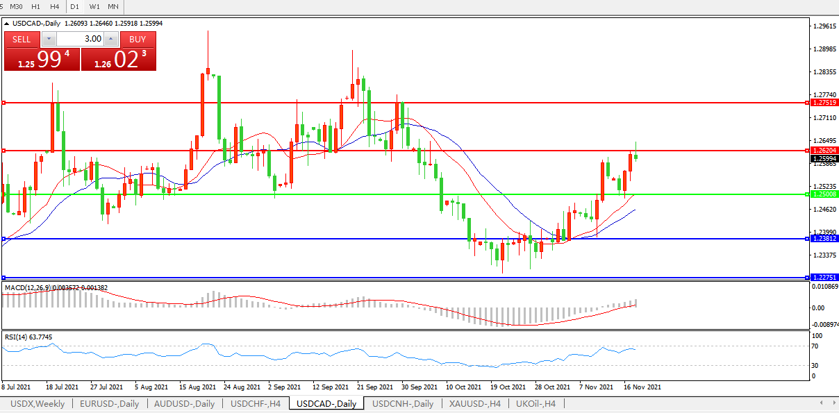 大宗商品相关货币与油价一同反弹,此前油价曾跌至六周低点。美元兑加元跌0.06%至1.2602,之前一度上涨0.3%至1.2647,是大约六周最高,市场预计加拿大央行将在明年初开始加息。