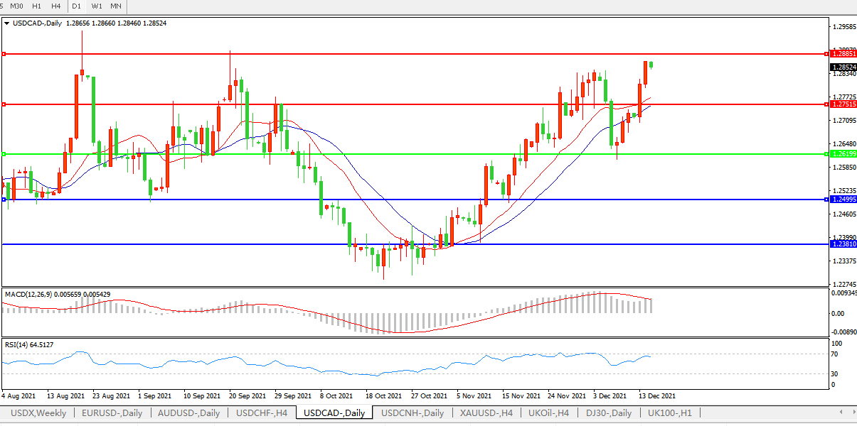 美元兑加元USDCAD 日线图: