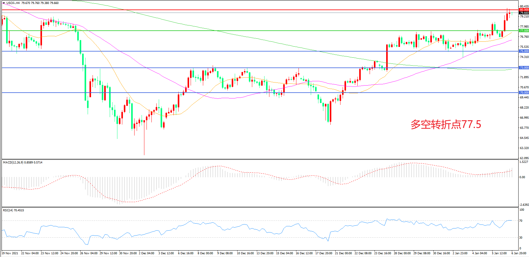 交易策略:在77.50之上看涨,目标80.00        83.00