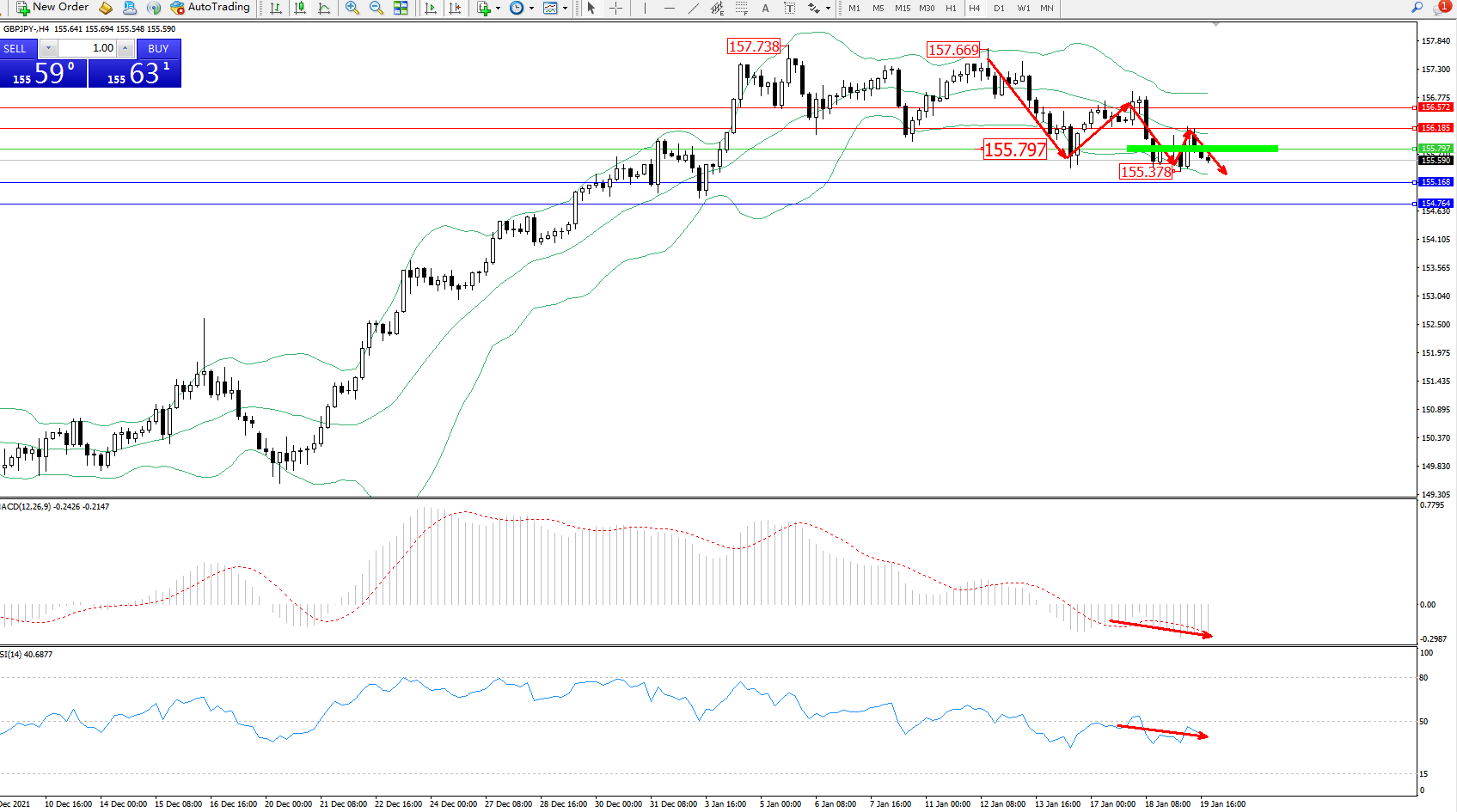 交易策略:155.797下方看跌,目标155.168、154.764