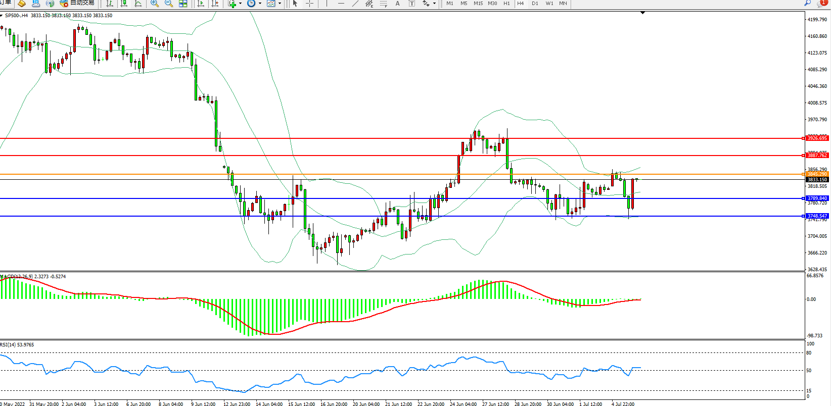 标普SP500——4小时K线图显示: