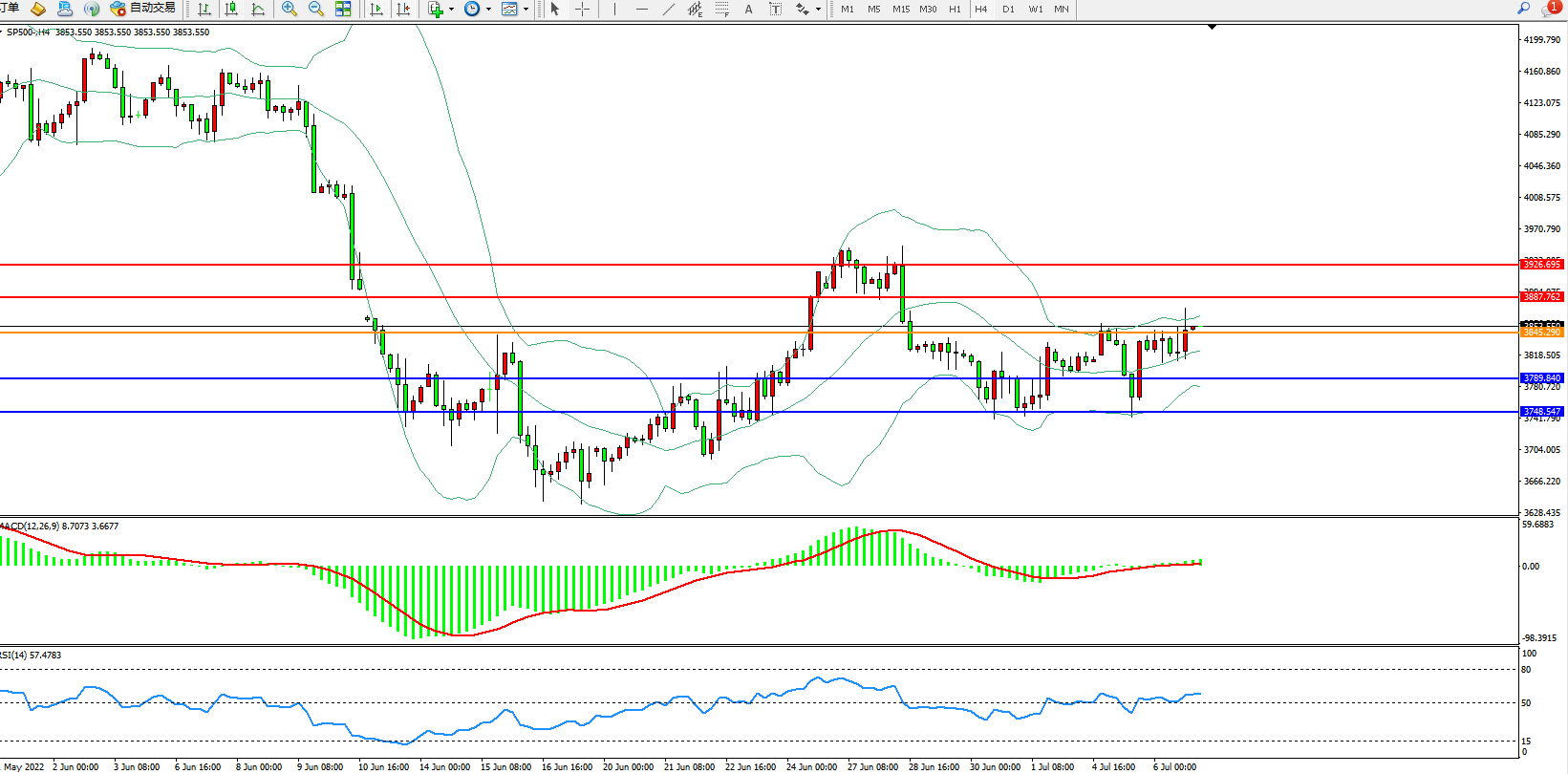 标普SP500——4小时K线图显示:
