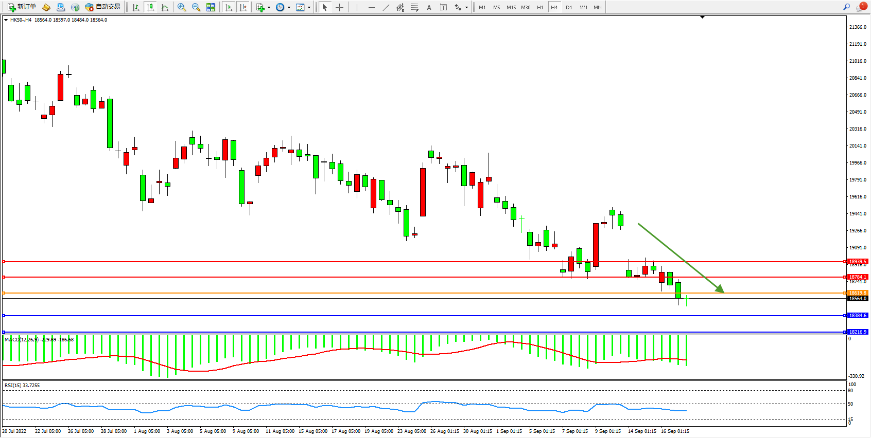 恒指HK50 4小时图