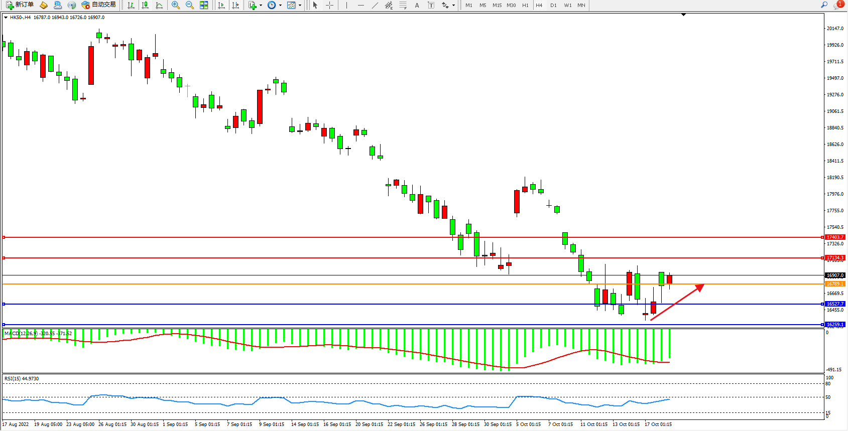 恒指HK50 4小时图