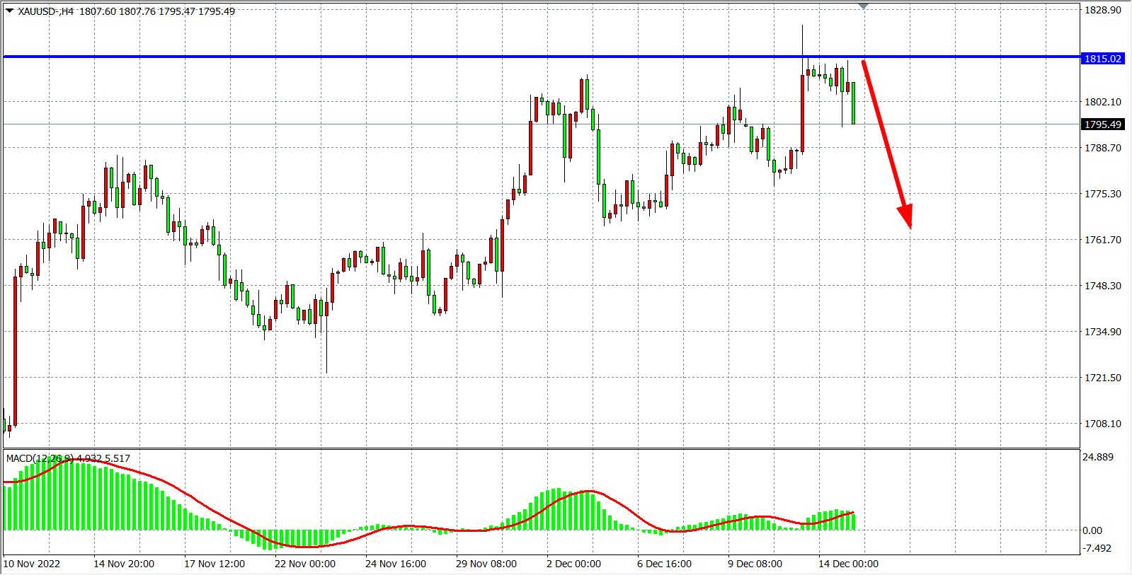 交易策略:在1815.00之下看跌,目标1780.00         1770.00