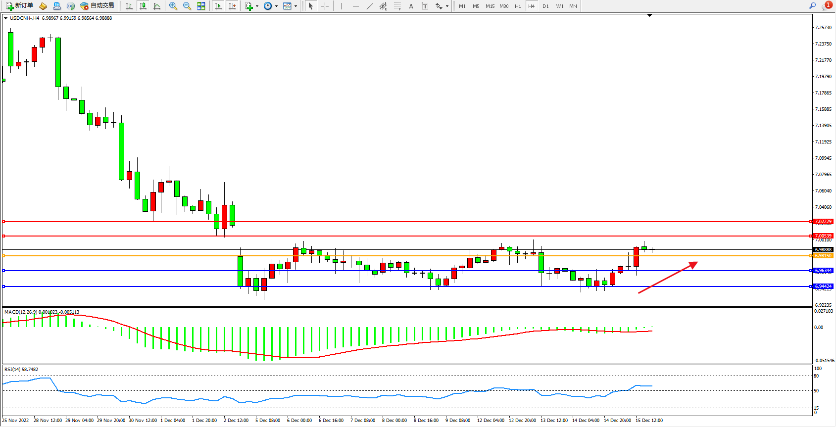 交易策略:6.98746上方看涨,目标7.00539、7.02229