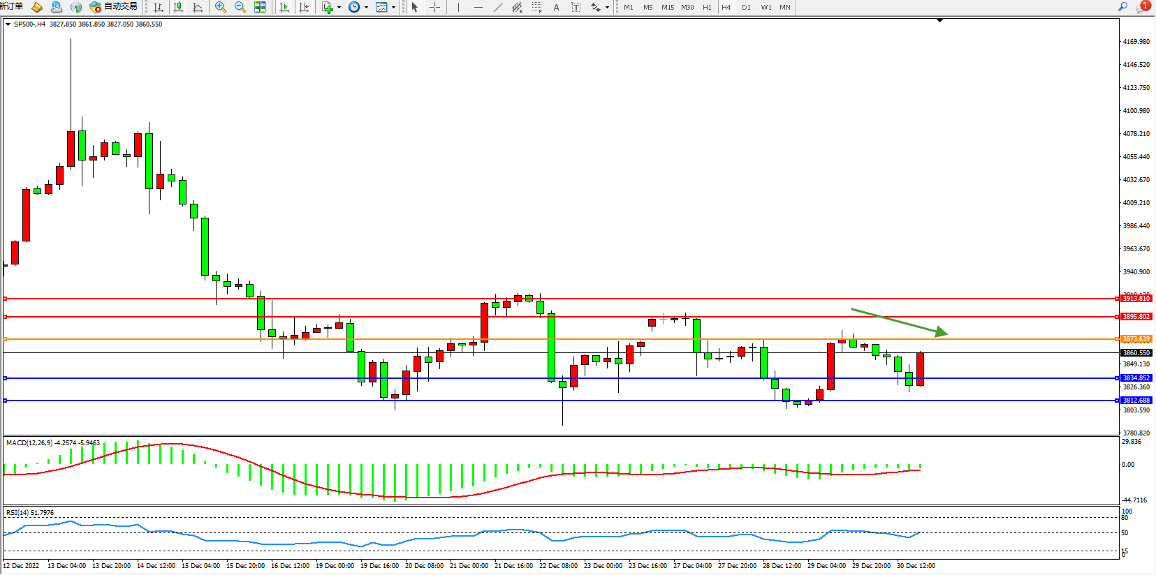 标普SP500——4小时K线图显示: