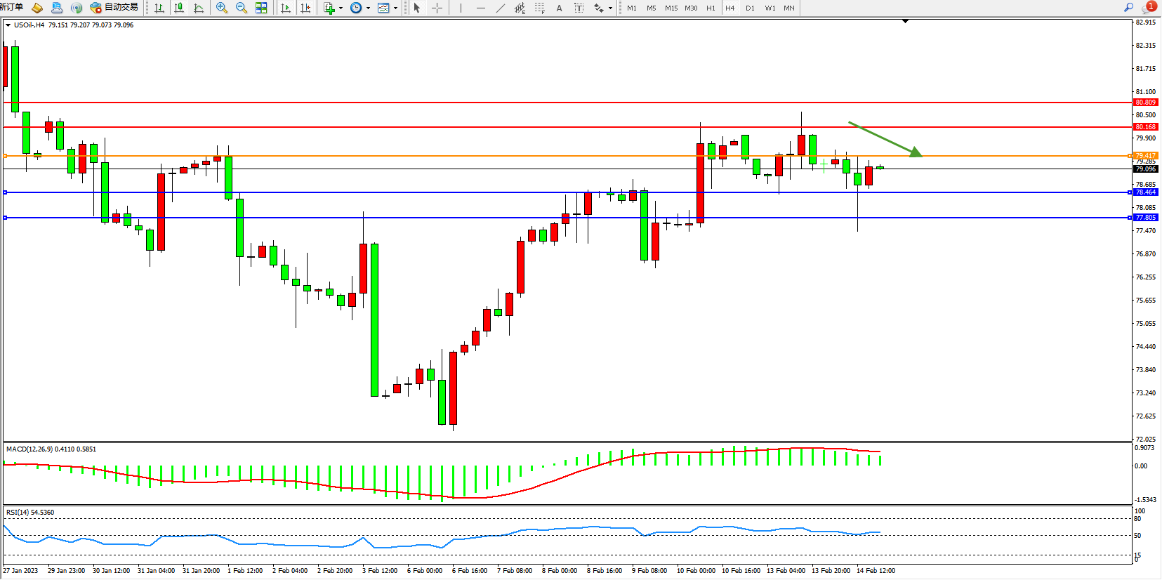 交易策略:79.417下方看跌,目标78.464、77.805