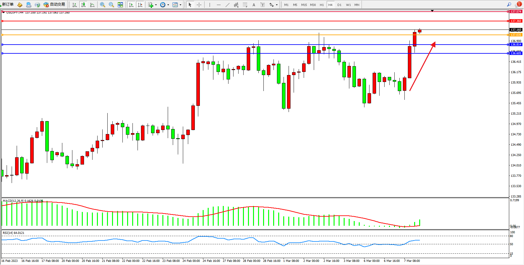 交易策略:137.035上方看涨,目标137.360 137.574