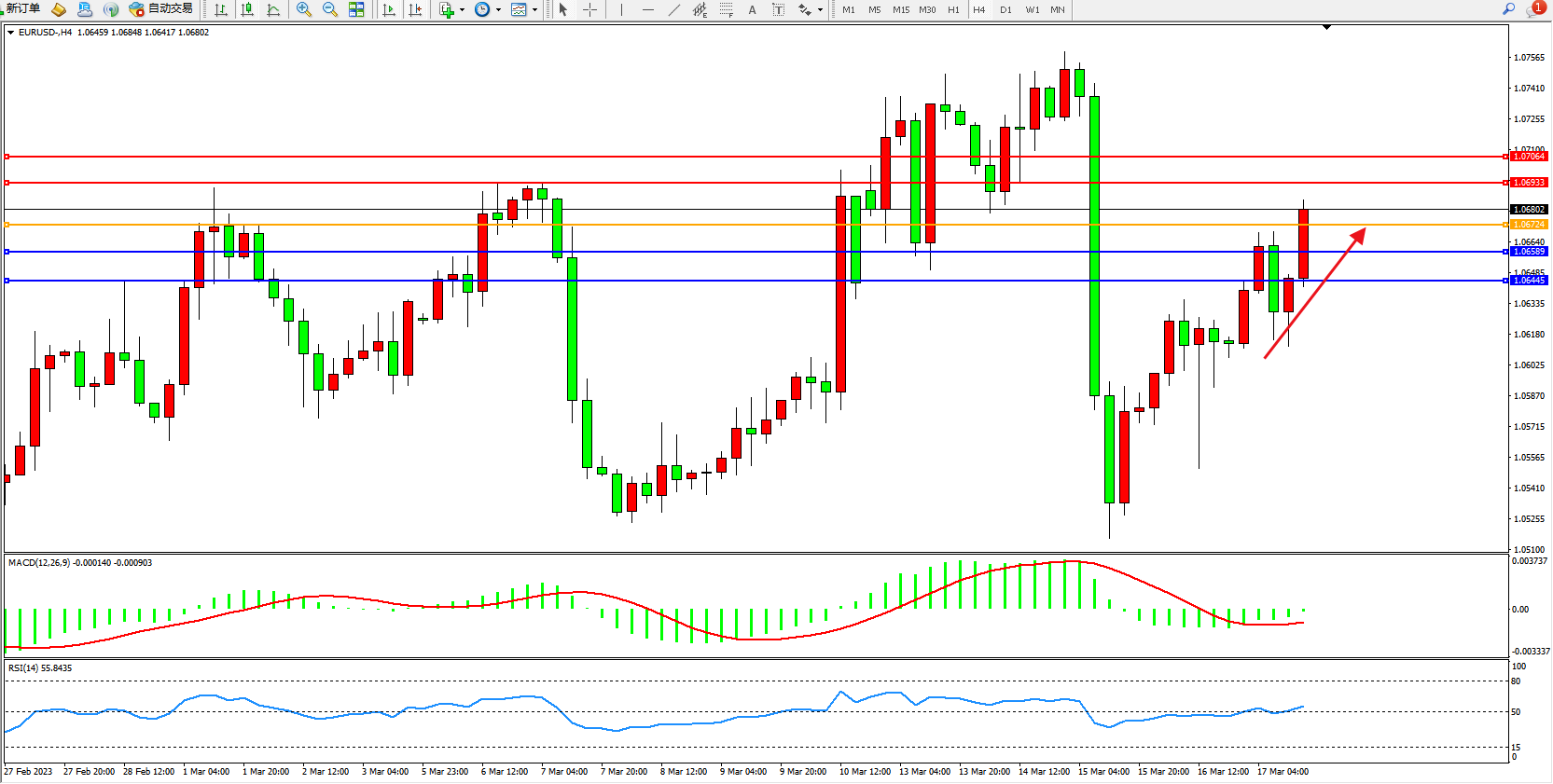 阻力位:1.06933 1.07064