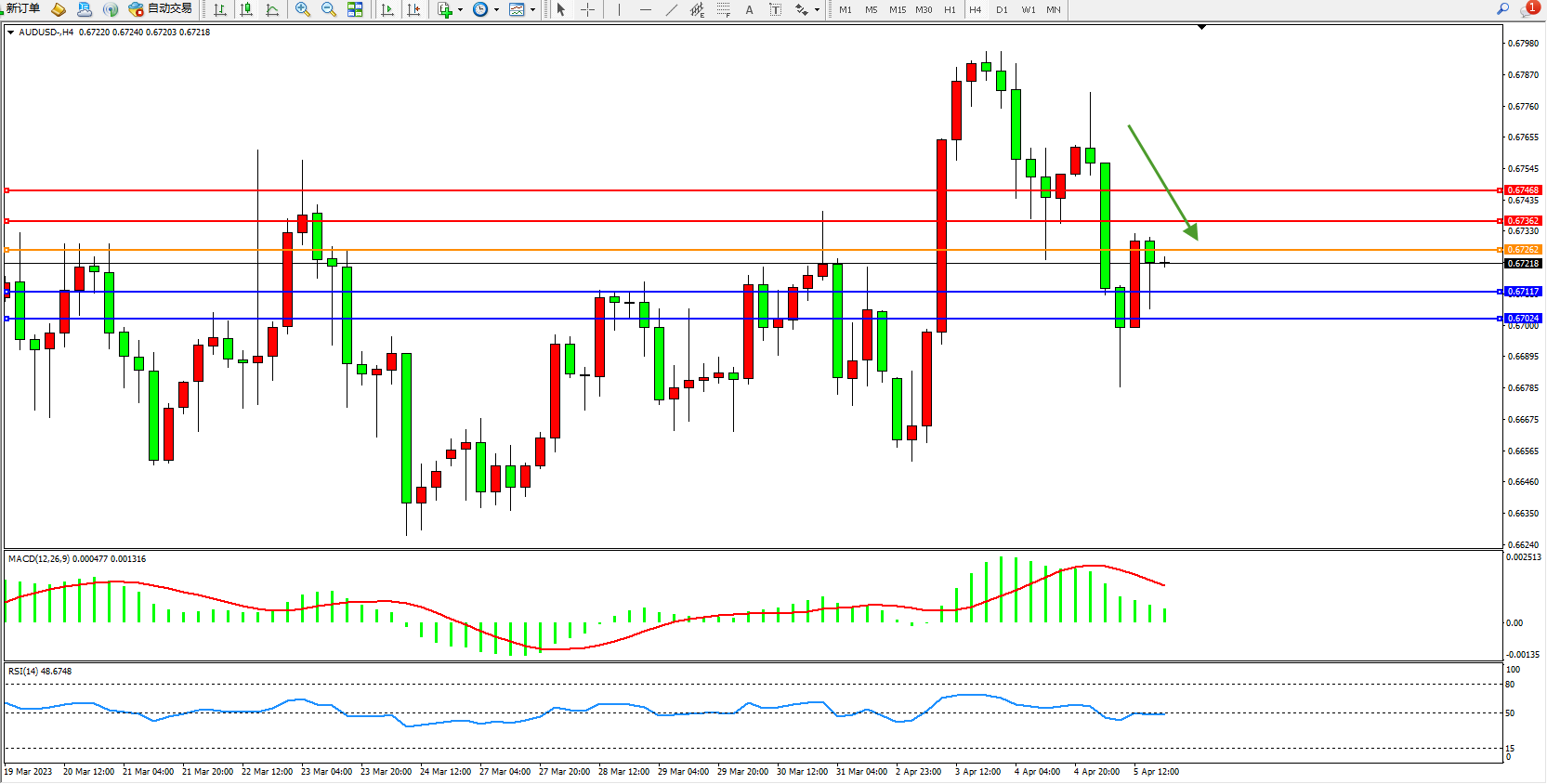 交易策略:0.67262下方看跌,目标0.67117 0.67024