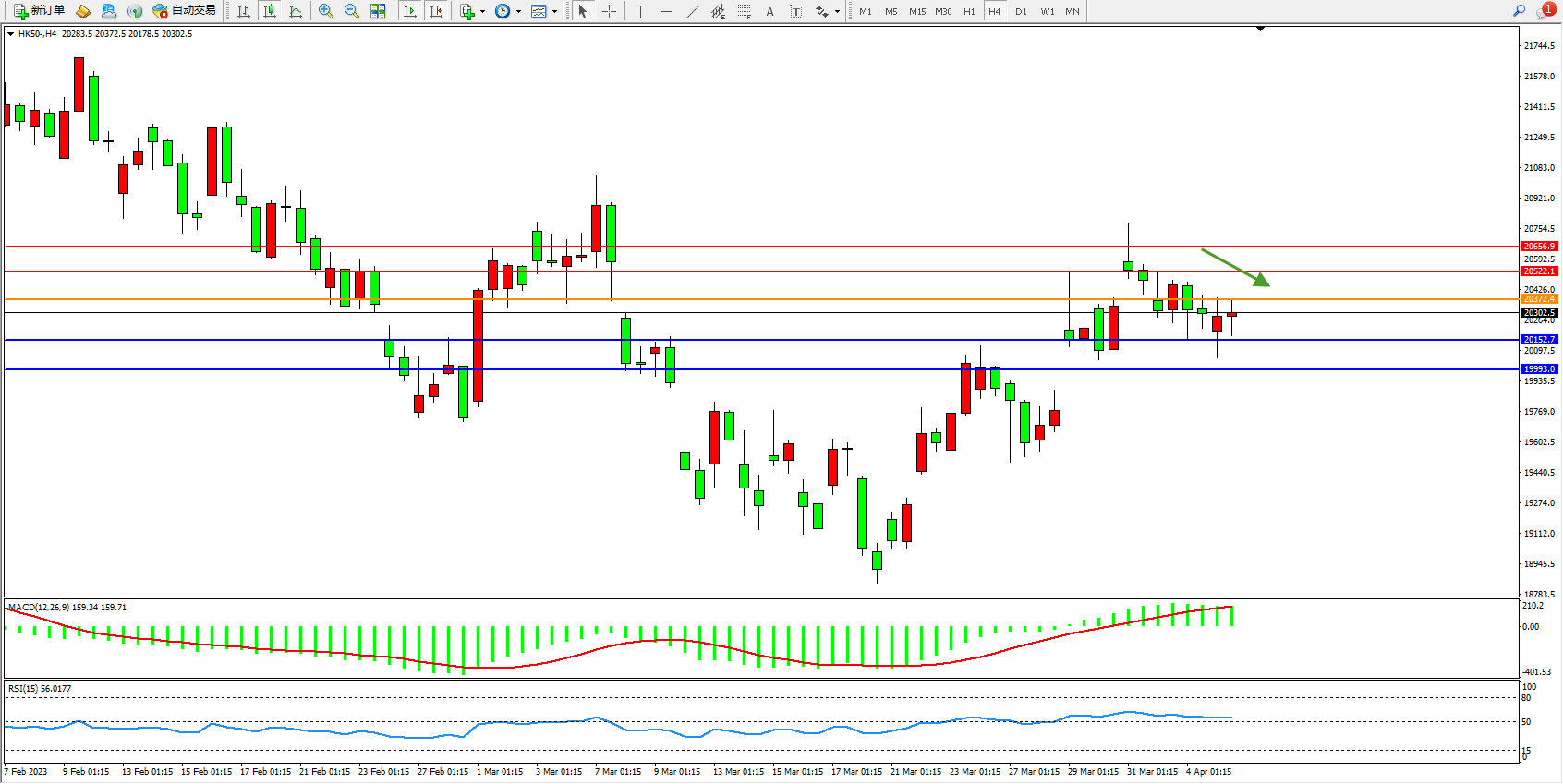 恒指HK50 4小时图