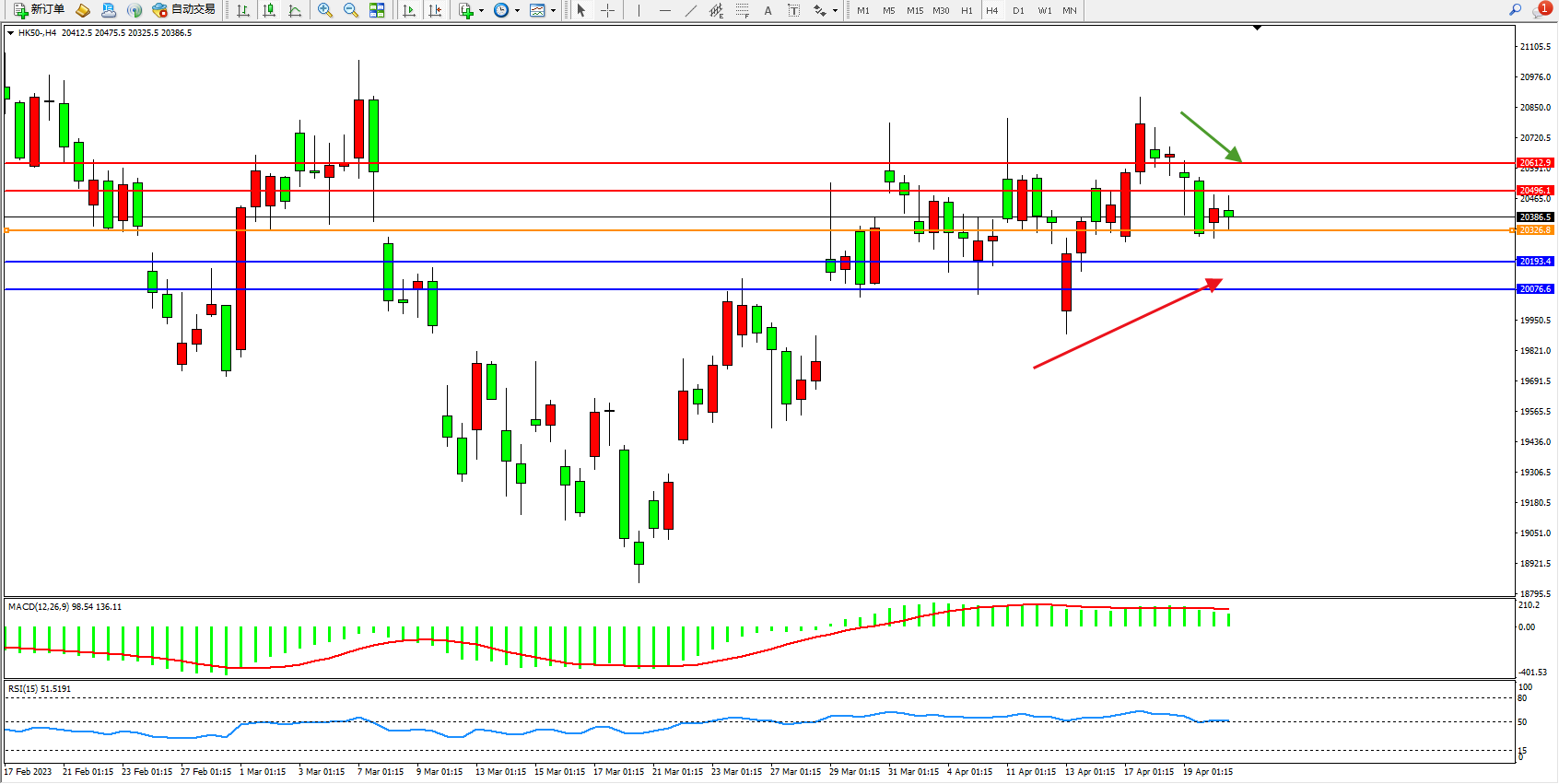 恒指HK50 4小时图