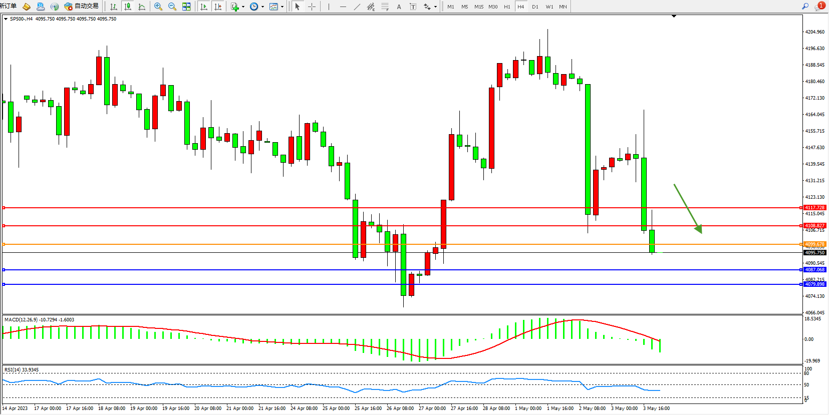 标普SP500——4小时K线图显示: