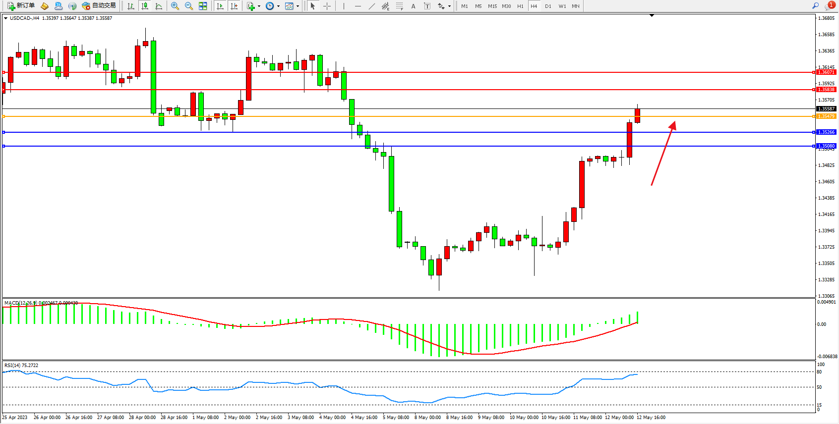 4小时图看:多头动力强势拉升上扬,短期多头情绪笼罩,市场不断拉升中,MACD指标处于多头区域持续上行,RSI指标处于多头区域高位上移;