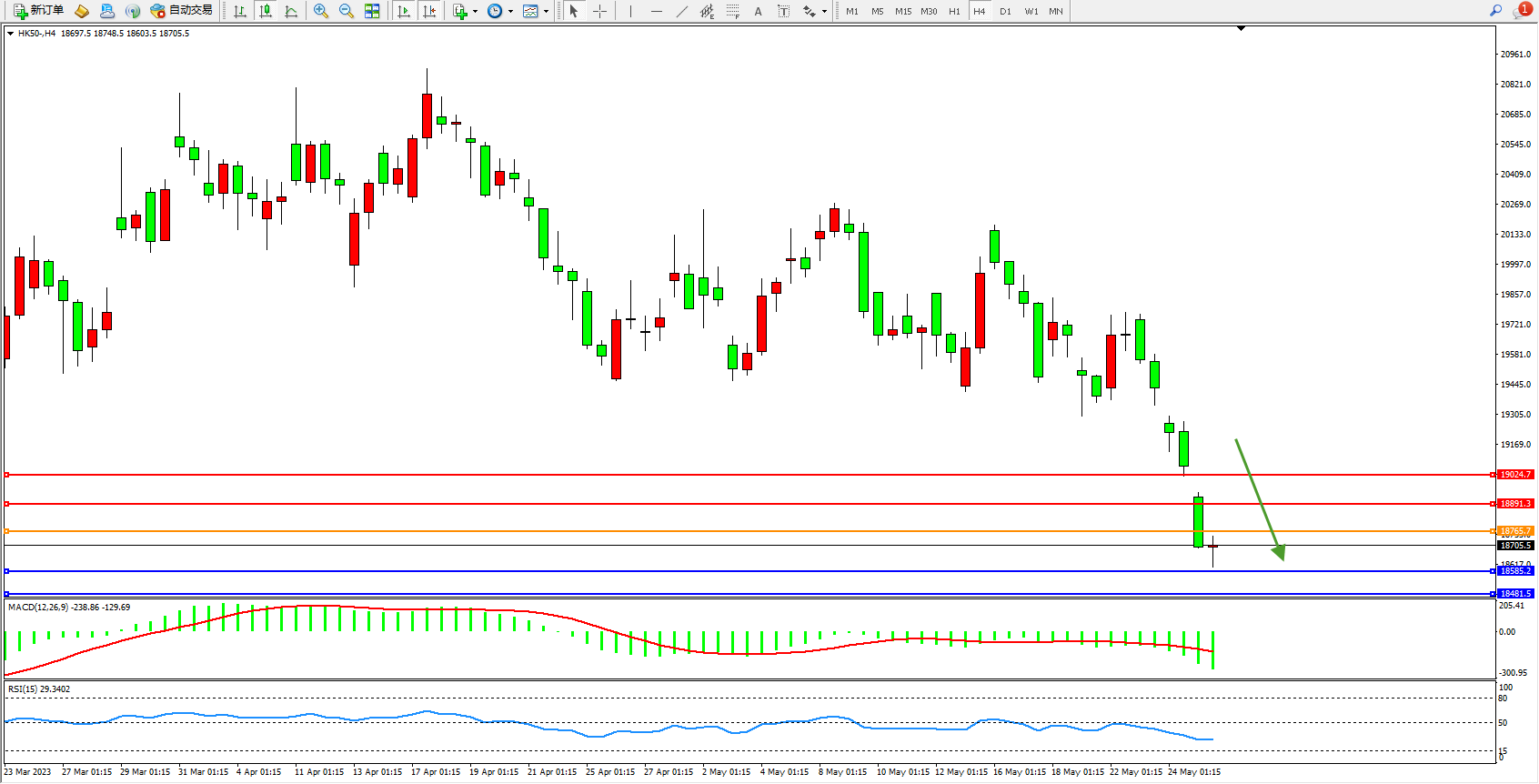 恒指HK50 4小时图