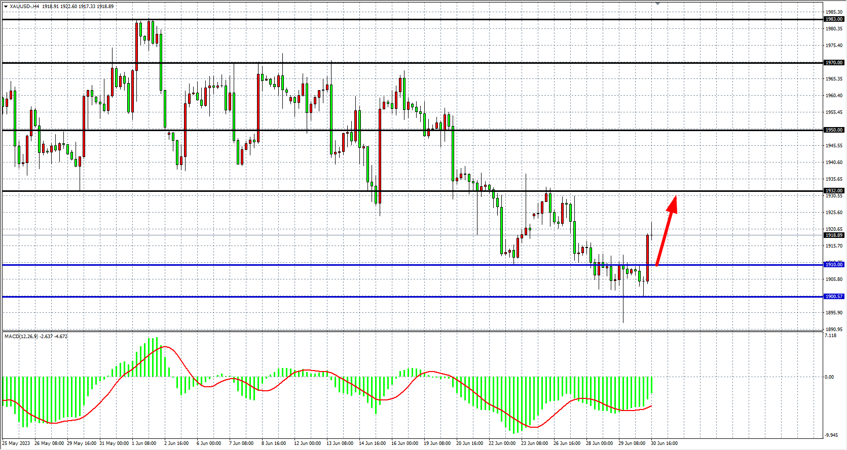 周五(6月30日)公布的通胀数据总体上升,5月份核心通胀率同比上升4.6%,通胀居高不下,是美联储2%目标的两倍多,继续加剧美联储将在7月恢复加息的预期,金价盘中一度回落1910 美元下方,随后收复全部跌幅,反弹并刷新日高至1918美元。展望后市,由于市场预期美联储及全球央行将进一步升息,令金价前景黯淡,后期上涨需要更多的基本面因素支撑。