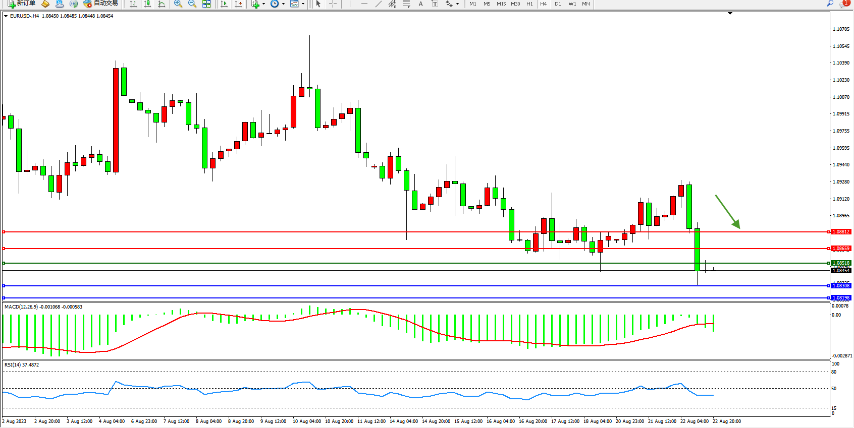 备选策略:1.08518上方看涨,目标1.08659  1.08812