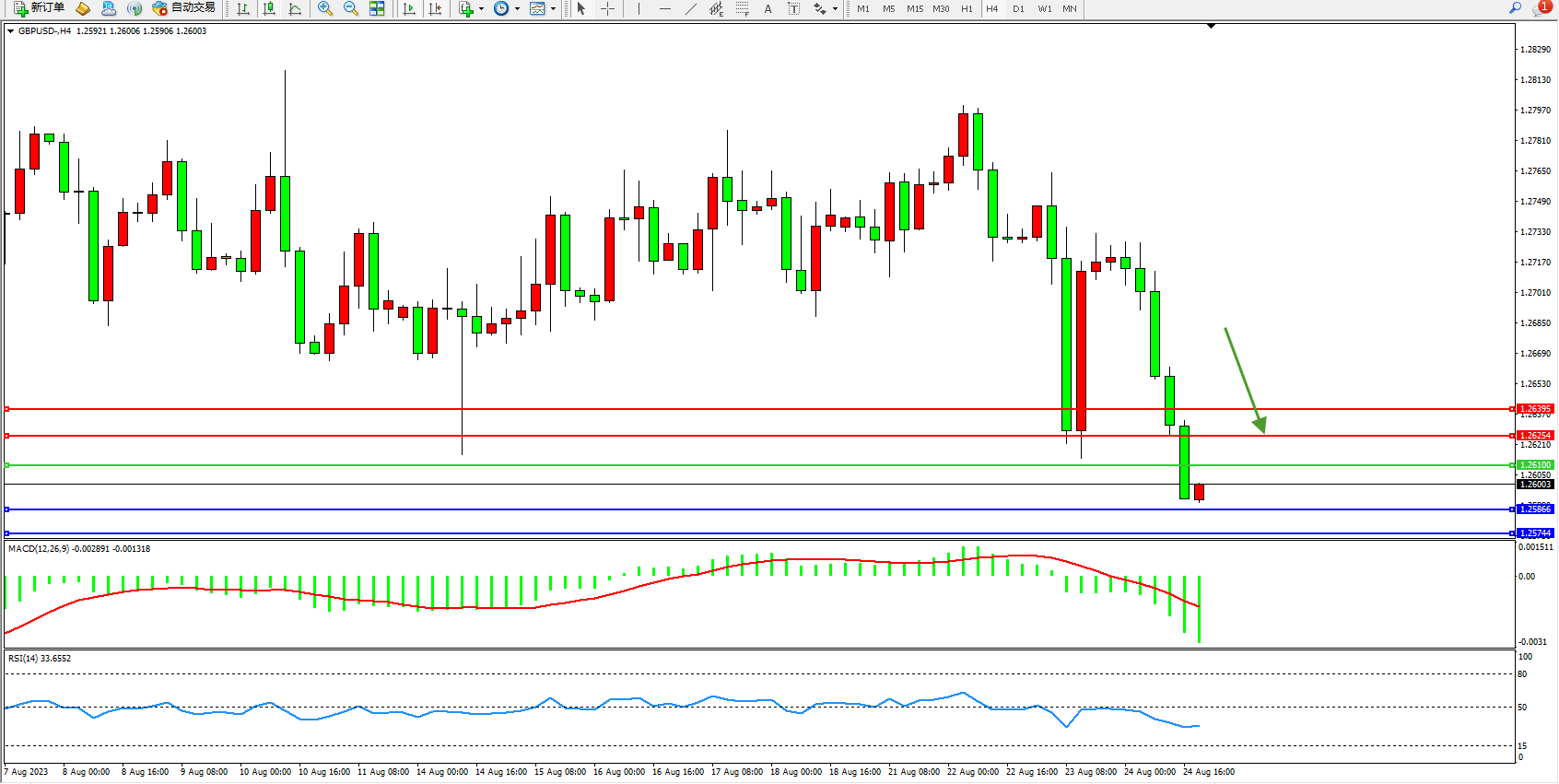 英镑美元GBPUSD ——4小时K线图显示: