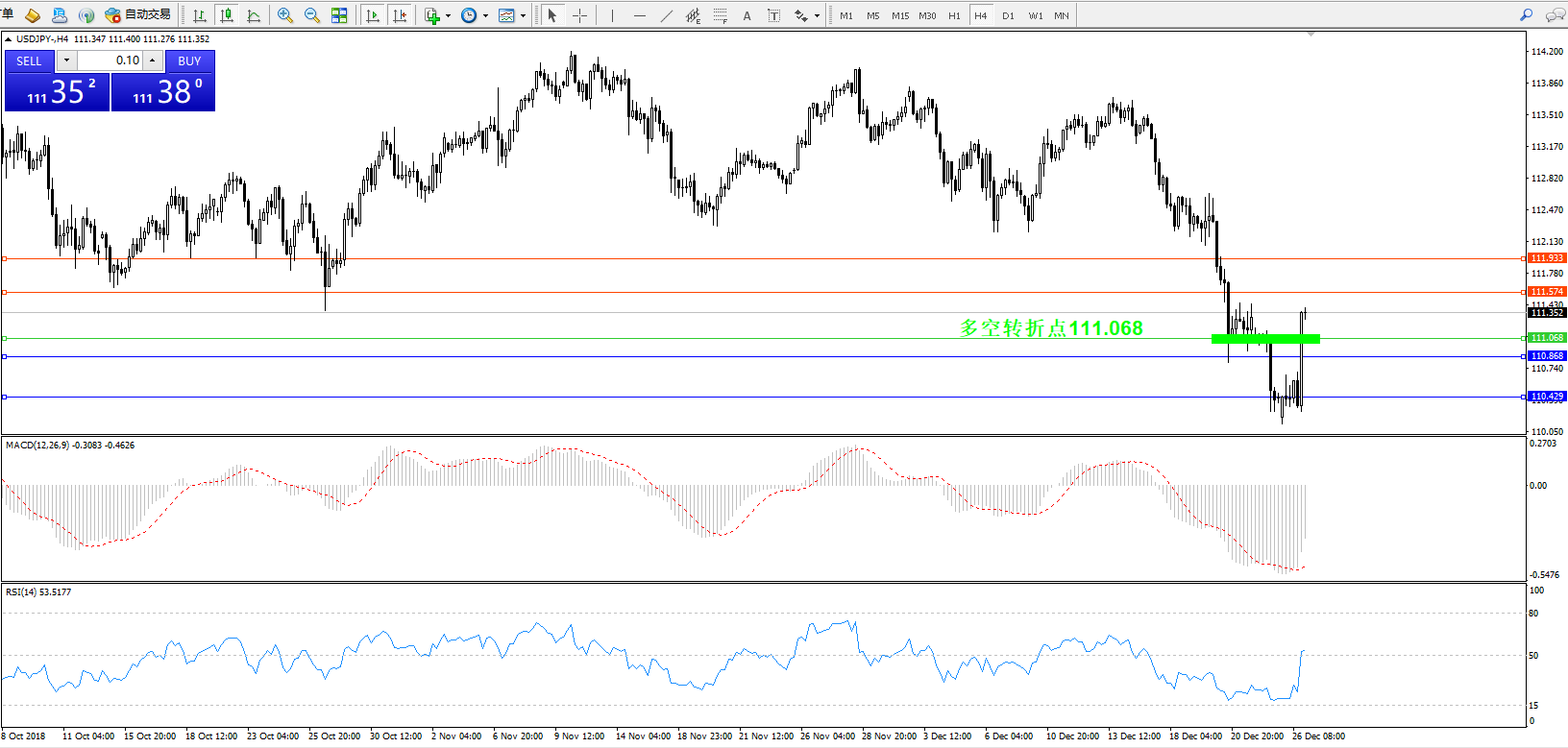 交易策略:111.068上方看涨,目标111.574111.933